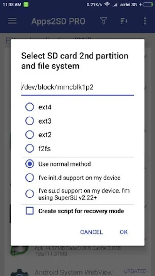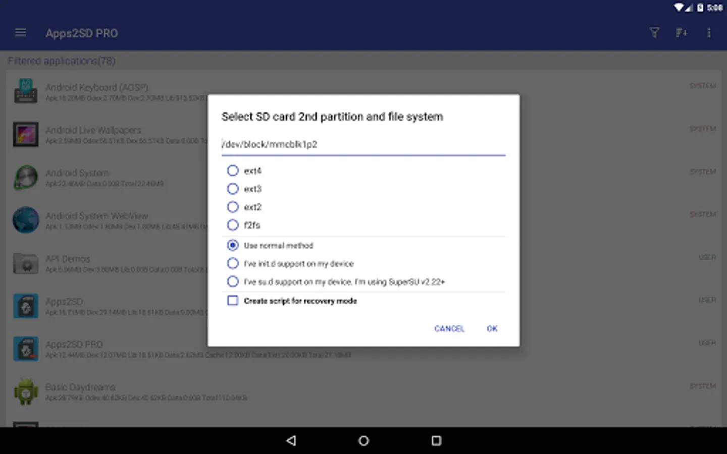 Link2SD (link to sd): Link apk, odex, dex, lib, internal data, external data and obb folders of user/system apps/games to SD card 2nd partition