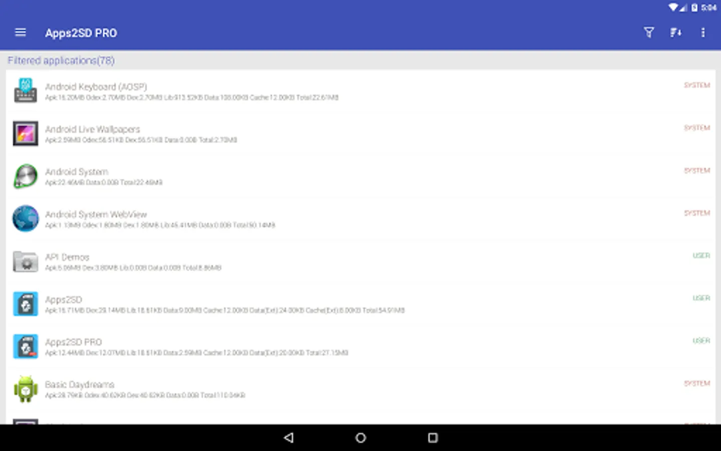 Batch link, unlink, backup, reinstall, uninstall, enable, disable, convert, integrate, clear data/cache, move to SD, move to phone and many more functions