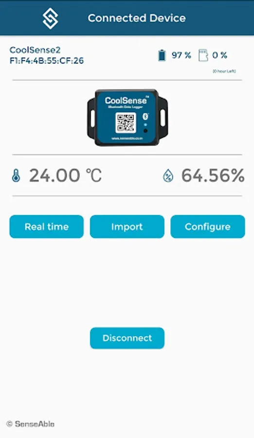 The CoolSense App by SenseAble is required to use the CoolSense Bluetooth Enabled Temperature / Humidity Data Logger. The data logger is used to keep a record of the Temperature / Humidity during storage and transportation. This is especially useful in the Pharmaceutical, Quick Service Restaurant and Cold Storage industry.