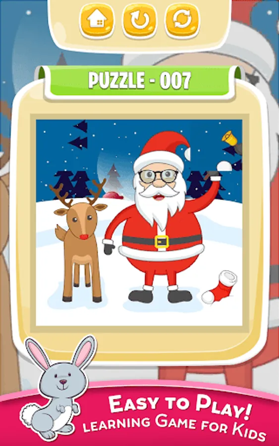 Each classic scene and character is partitioned into different jigsaw blocks. Tap on each block to correct place on the board. Once all blocks are corrected level is complete. Each level features a different beautiful scene drawn by a professional Christmas puzzle artist. Children enjoy success time and receive positive reinforcement. So they want to keep learning and playing.
