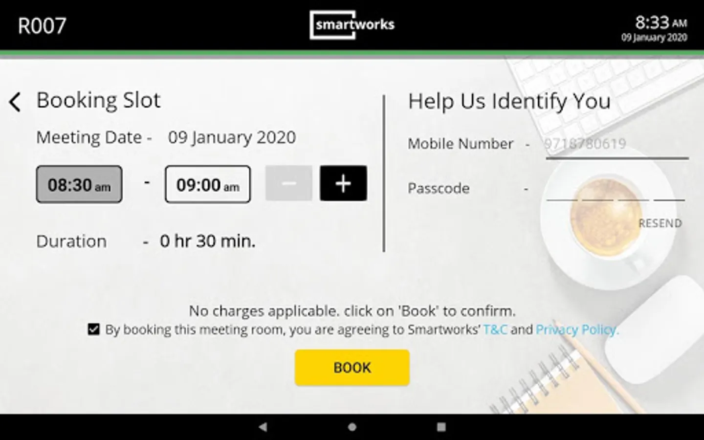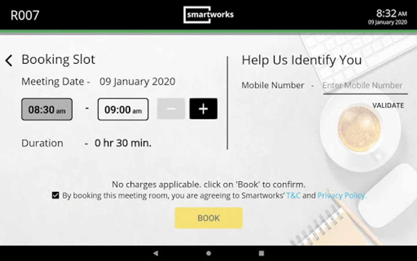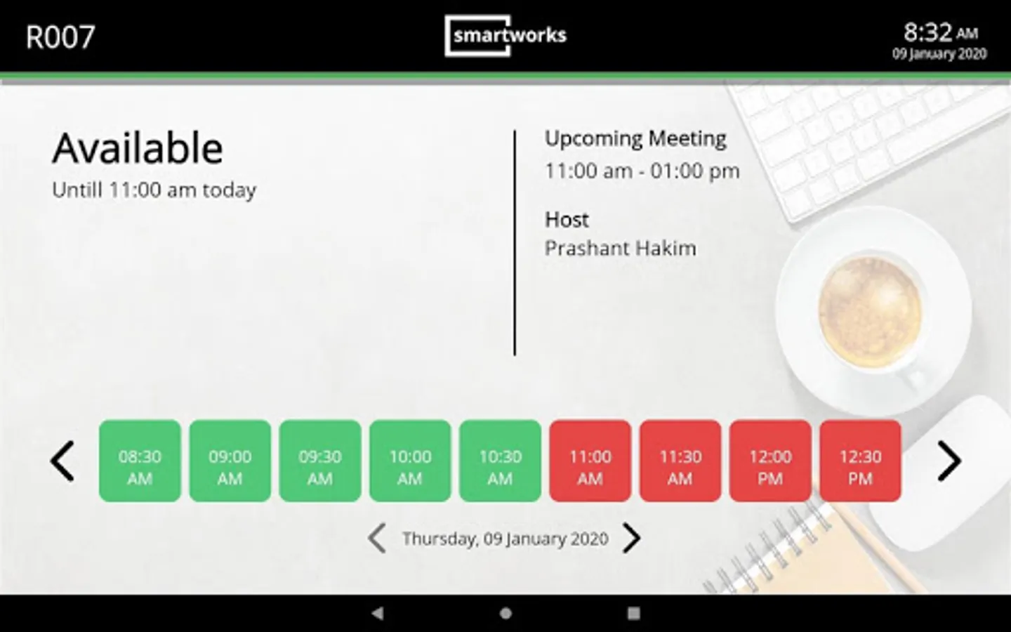 Book, Extend and End meetings directly on the display of Smartworks Meeting Room Digital Signage. With the displays status informing of room availability, you can easily check which slot is available for the meeting room.