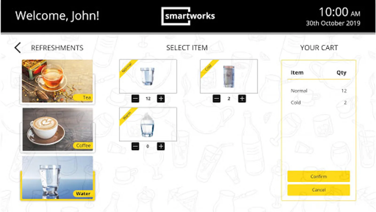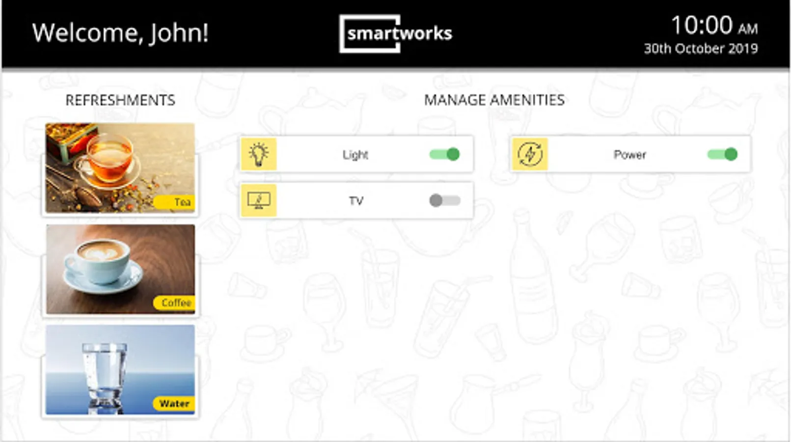 of options available in Smartworks Pantry. The Application is smartly integrated with Pantry System from where requested refreshments are delivered to respective meeting rooms.