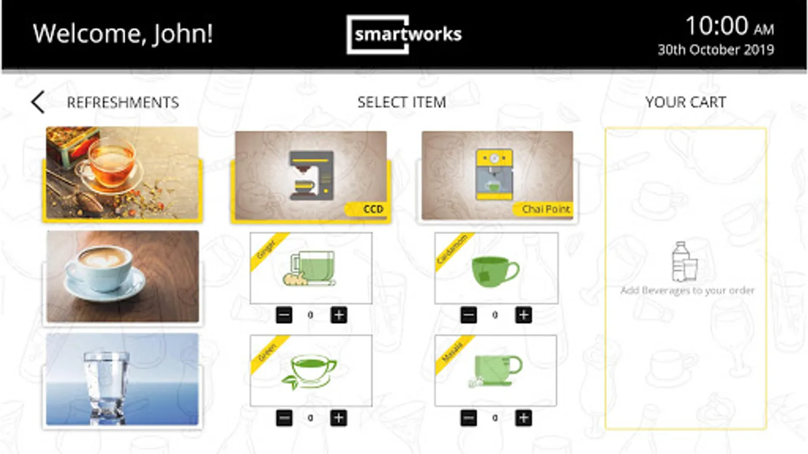 Smartworks provides Food ordering Application installed in meeting rooms through which users can order choice of their refreshment from varieties