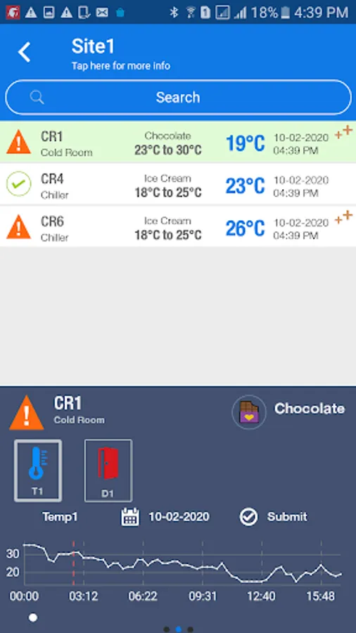 This app is used for monitoring the cold rooms fitted with Tracer Cold Room Monitoring system. The temperature and humidity can be monitored using this application.The app alerts the user when the temperature exceeds the set limit.