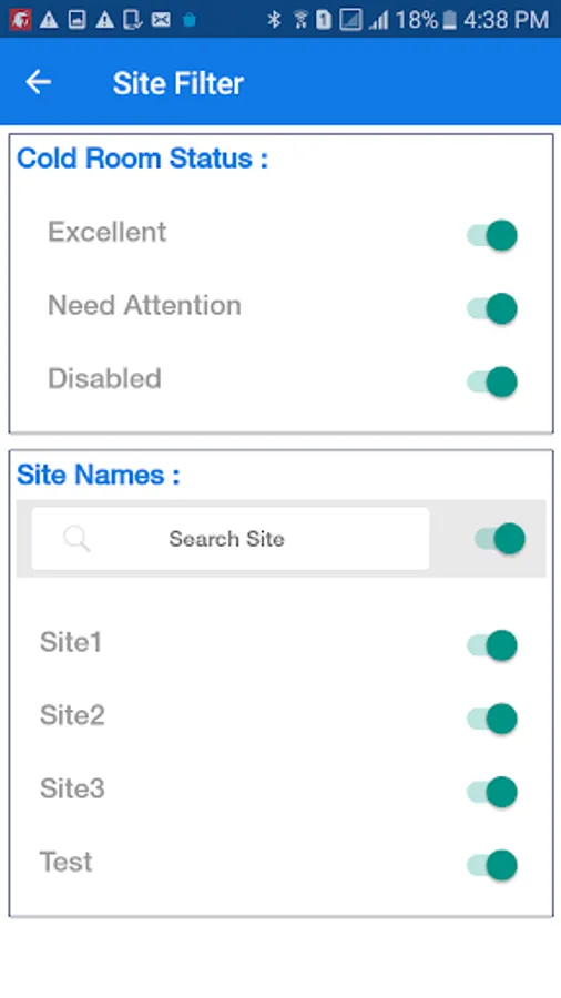 The cold room door open-close status, compressor, fan ON-OFF status is also available in the app.