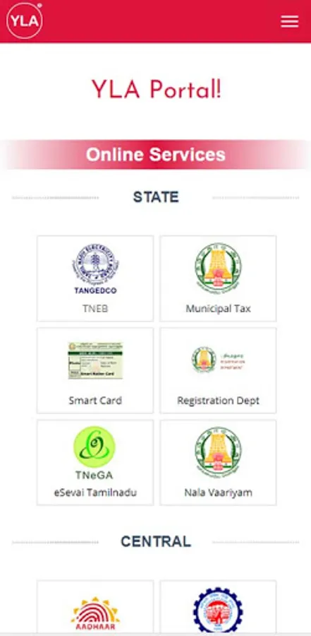 TNEB, Municipal Tax, Smart Card, RTO Services, LPG, Bill Payments, Online Booking, Provident Fund, Aadhaar, Income Tax, Police Dept, FASTag, MSME Online, GST Services, Registration Dept, FSSAI, Employment Services, Passport, CM Cell, PM Cell, Collectorate Contact, TNPSC, Ambulance, Blood Donors, Gateway Services, Social Media Links, e-Library, School/Govt Exam Study Materials, Audio Book, Business to Customers.
