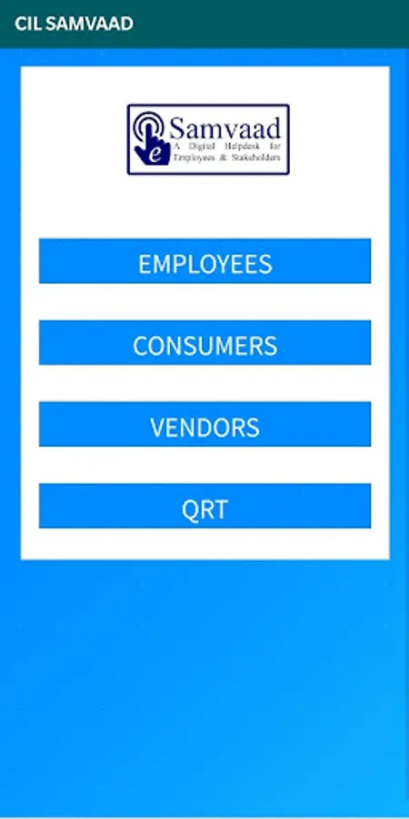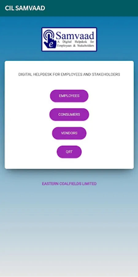 CIL SAMVAAD is an online digital helpdesk for its employees and stakeholders. It can be used for submission suggestion and feedback which are monitored and securitized by respective subsidiary companies. Each subsidiary company has specific portal for submission of feedback and suggestion which can be accessed through this app. Also a Quick Response Team will be available for resolving issues raised by users. Consumers and Vendors can register by giving basic information and further login and submit feedback or suggestions