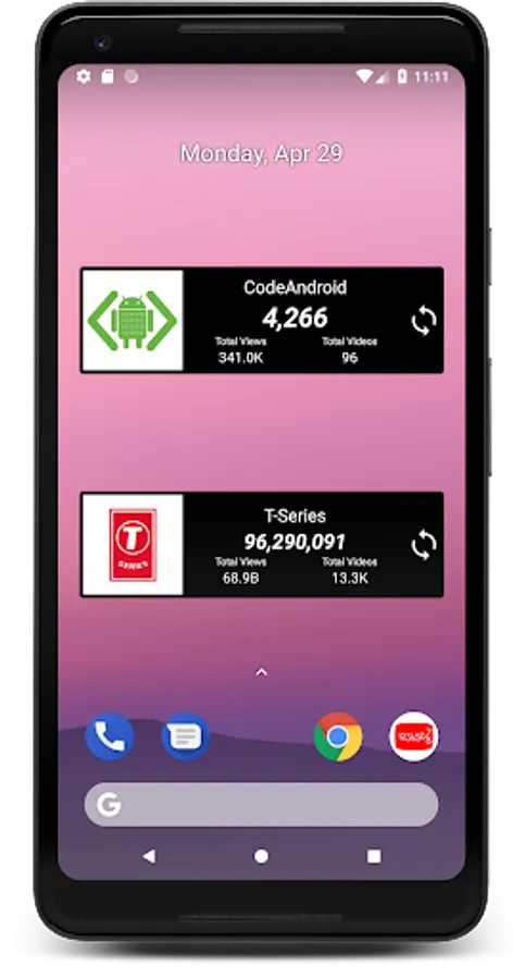 YTCount Widget app provides widgets with subscribers count. So that we can have a track of our application at home screen without going anywhere.