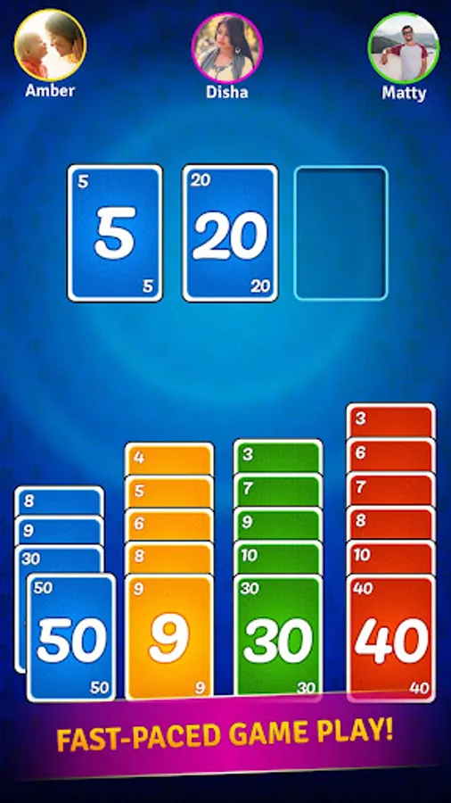 Game begins with equal number of cards distributed among the players. The player who receives the top card i.e. Red 50 (red-colored card with number 50) starts the first round by discarding a card, Let say Red.