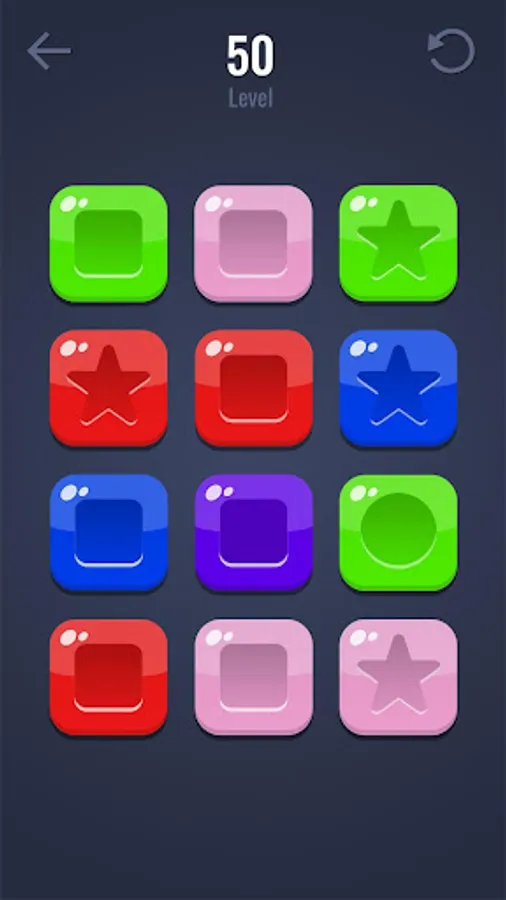 Aim is to pop all the plastic buttons on screen. Find the perfect sequence to complete in a level. Create a combination of colors and shapes to find the solution.