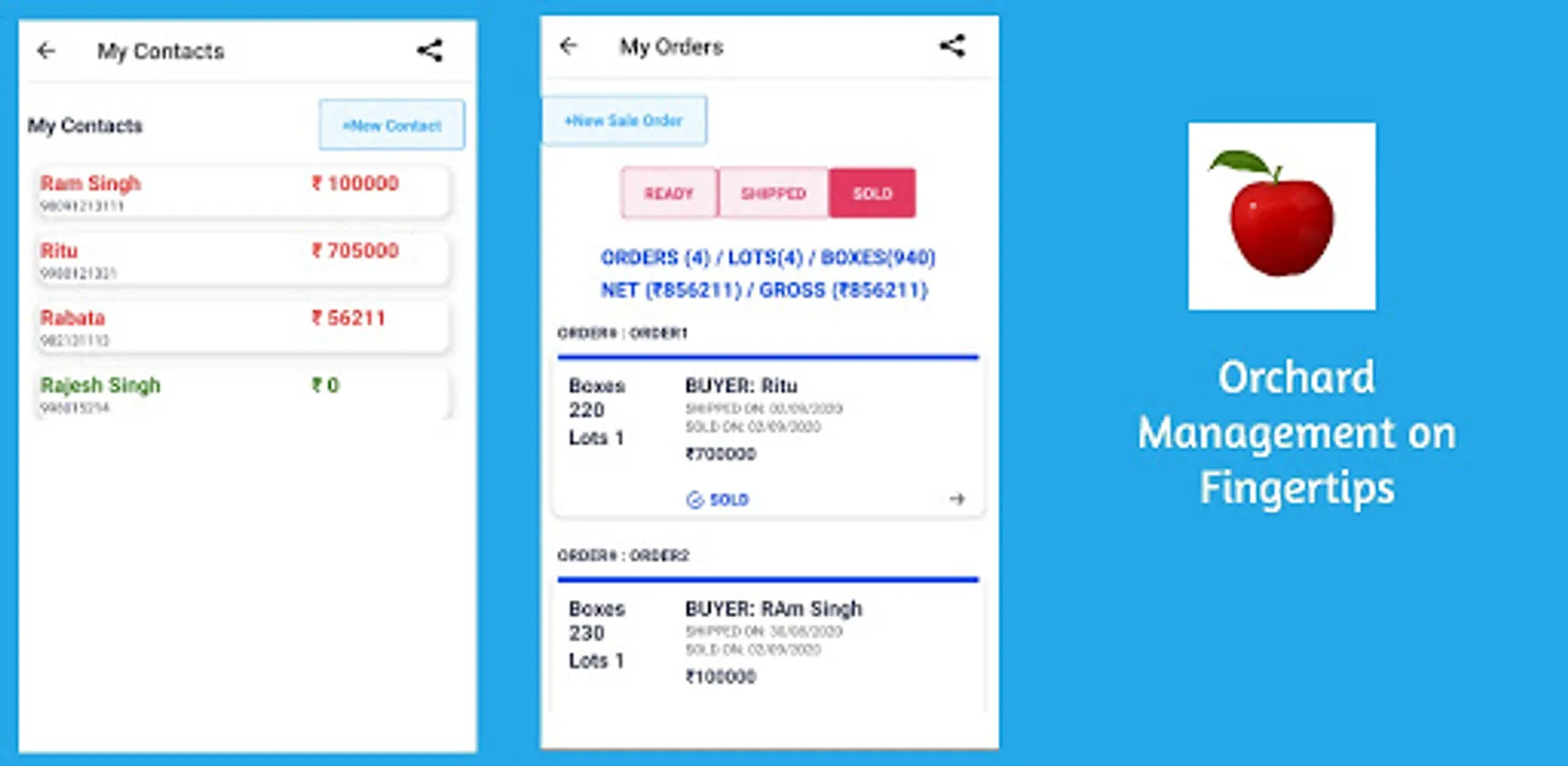 This is one stop solution for growers for managing their orchards. You can record all your different interactions: