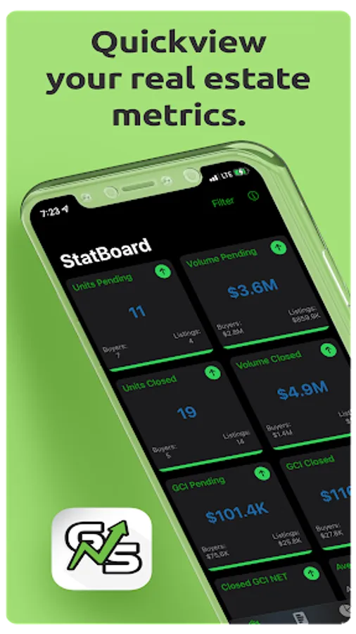 GreenStats empowers Realtors to keep the profit in their pocket by displaying key performance indicators and profit tracking in the palm of their hands. Our platform was built by a top performing Realtor who hand drew every screen to create one of a kind experience for Realtors. With GreenStats, you will never have to wonder or count the amount of pendings, closings, listing taken, GCI, Profit, and more. The best part is, the information you need to succeed is displayed at your finger tips! If you don’t know your numbers you don’t know your business and GreenStats has made it easier than ever to understand your business as a Realtor.