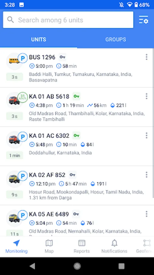 - Monitoring with all necessary information on movement and ignition state, data actuality and