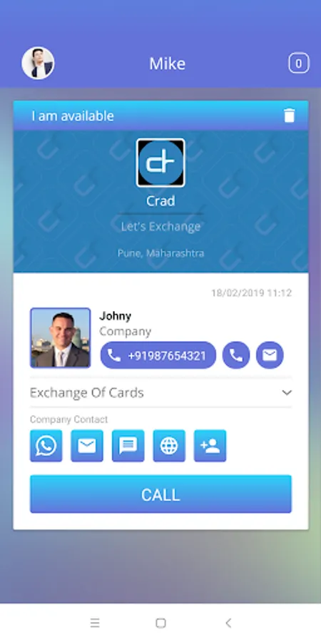 Not Just Share! Exchange Your Card In 10 Seconds. Business card sharing is an essential part of any business. The biggest problem with the printed business card is expiry, miscommunication, carrying, limited information and reach. The crad is developed on the basis of the solution of these problems. It provides instant card sharing with surrounding devices. It doesn't require manual send and receive method. The user just has to select the other user and application will take care of everything. Users can share large amount of information within just a 10 seconds.