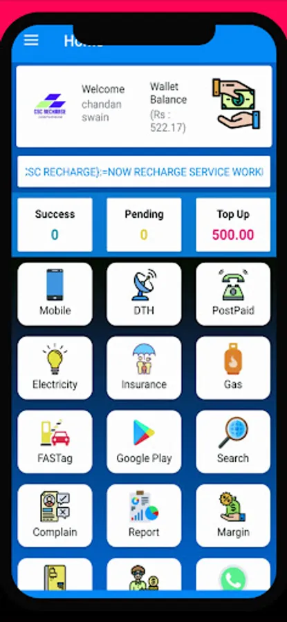 our application is fastest and highest commission recharge application it is most trusted and renewable recharge software application. the recahrge sucess rate is 99.99 percentage our motive is to income for all online recaharge customer you can jion our application only few step after download the application we register and load moey in your wallet and earn more and more.