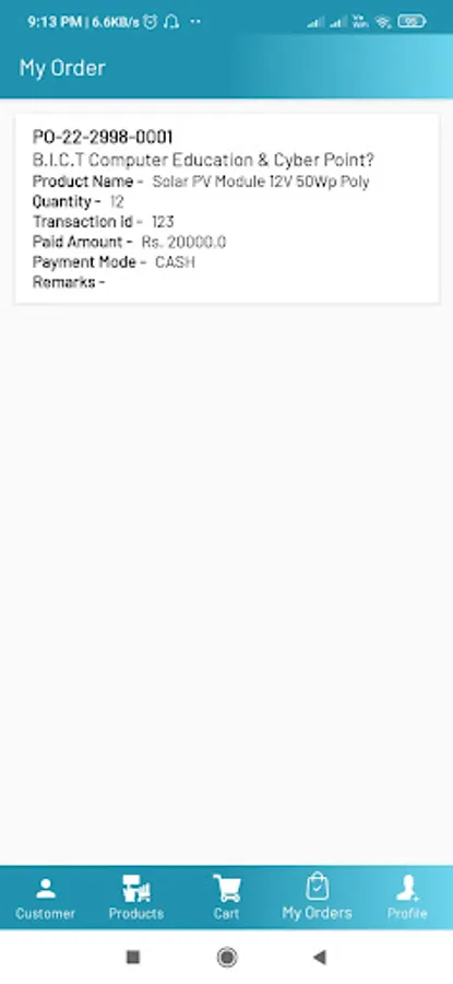 b. Order Placement