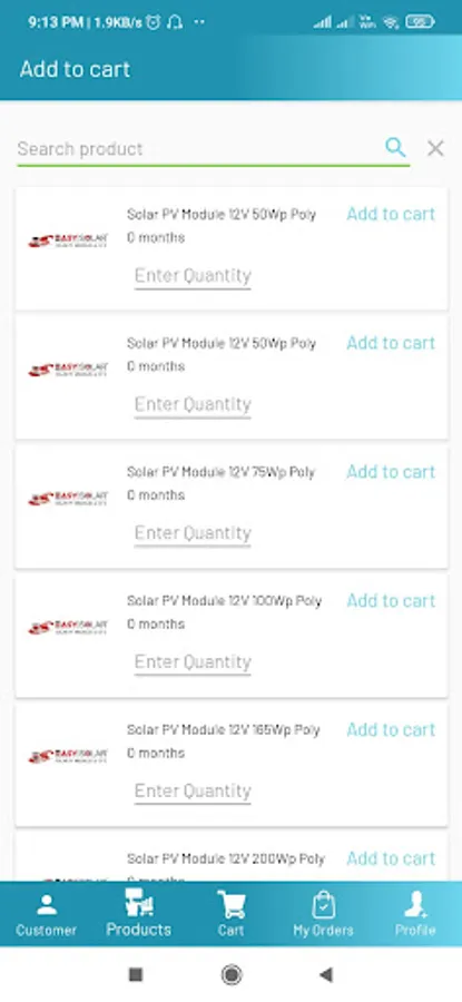 c. Option to search Product and keep it in Carts.