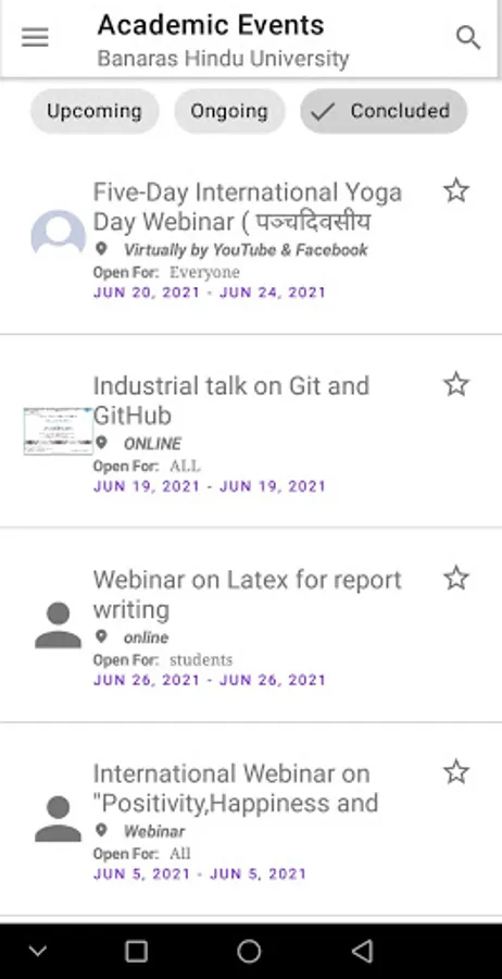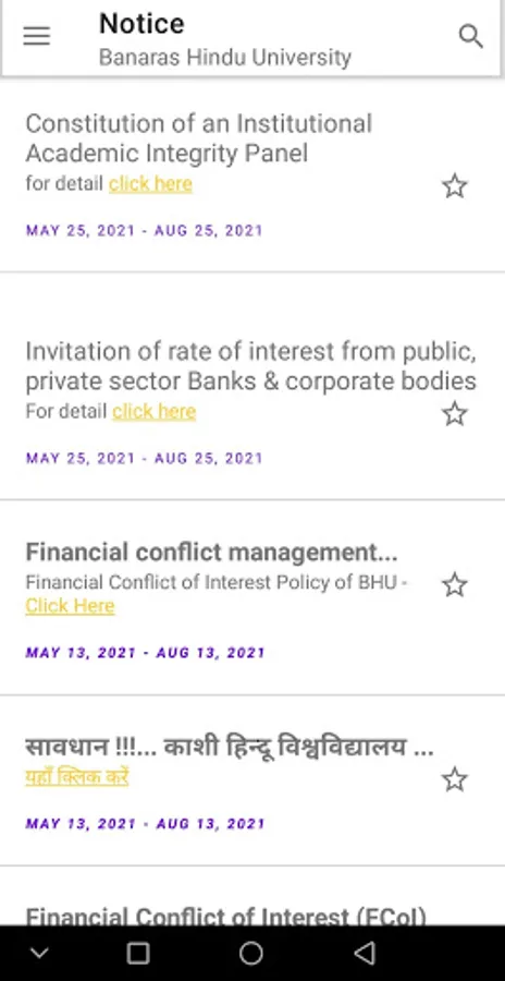 mark your favourite notice, news, and/or academic events to view them separately in starred notice, news, academic events.