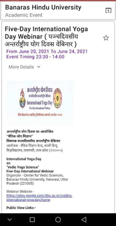 You can view the Notice, News, Academic Events, Temporary Vacancies in official website. Click on open in web icon to open the content on new.bhu.ac.in
