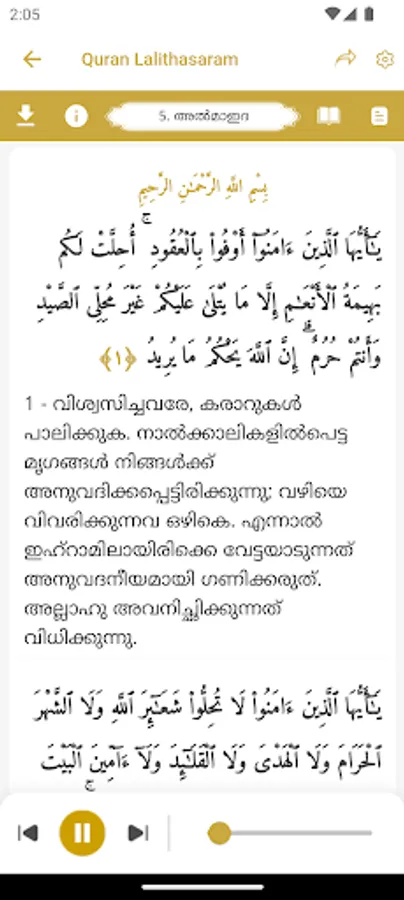 · Audio recitation of Al Afasi and Malayalam recitation in Noushad Ibrahim's voice.