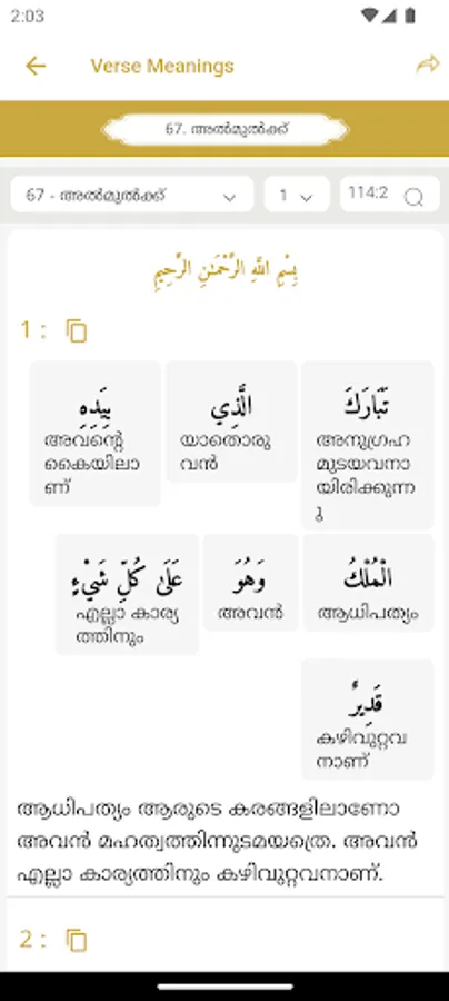 · Aayah, Translation and word meaning in Malayalam