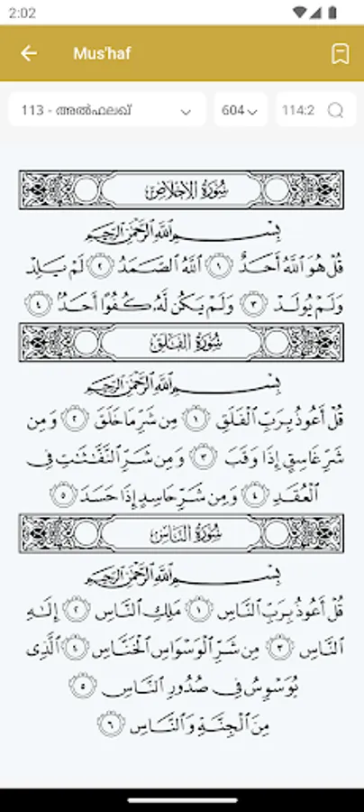 · Quran Arabic Text with Malayalam translation.