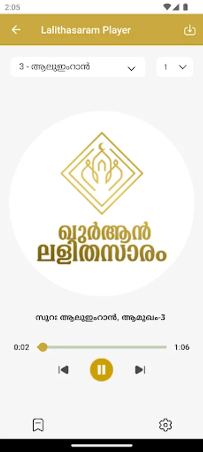 Quran Lalithasaram is a free Android application which enables easy understanding of Holy Quran by providing simplest Malayalam transcript with audio. Optimised for Audio File download. We are open to hear your suggestions to make our product best.