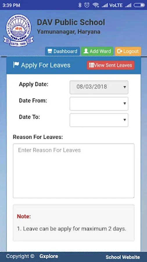 D.A.V Public School, Yamuna Nagar launched new mobile application for parent.