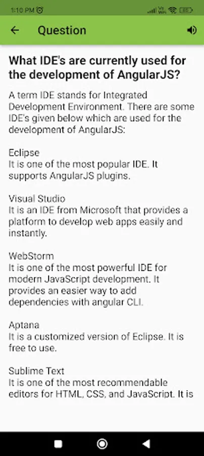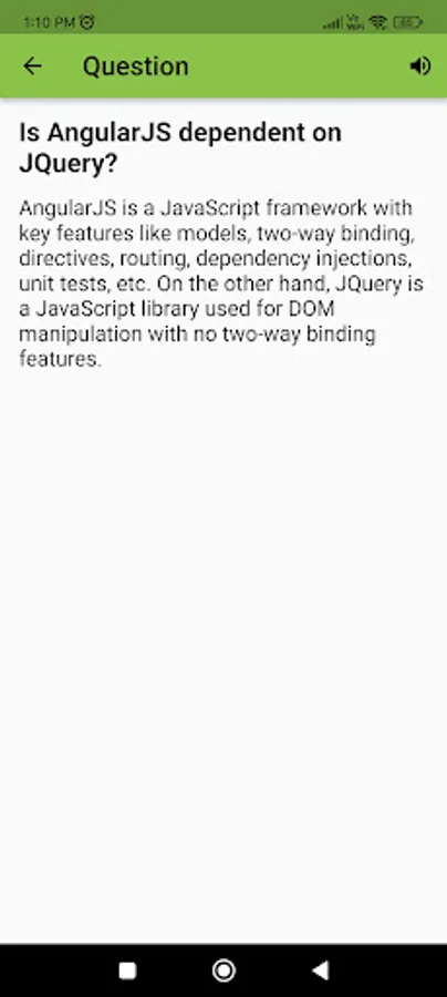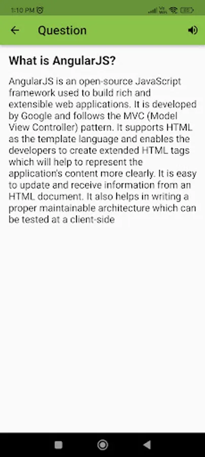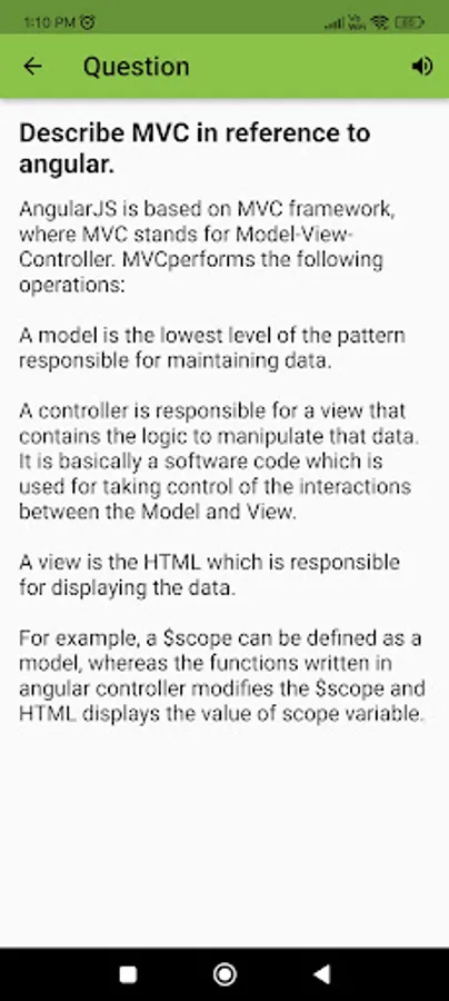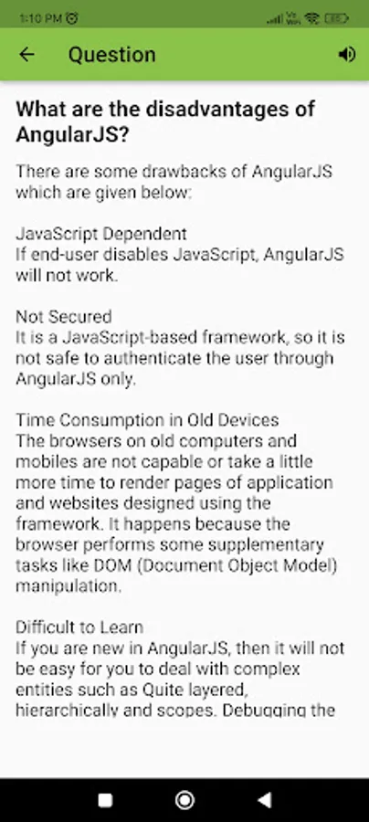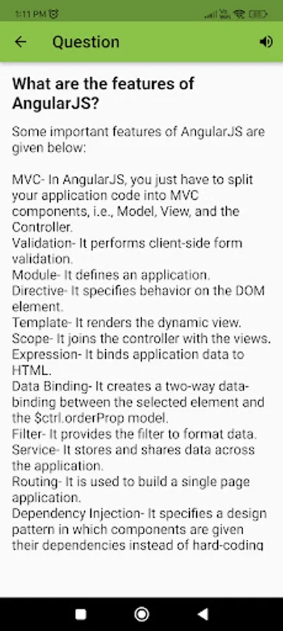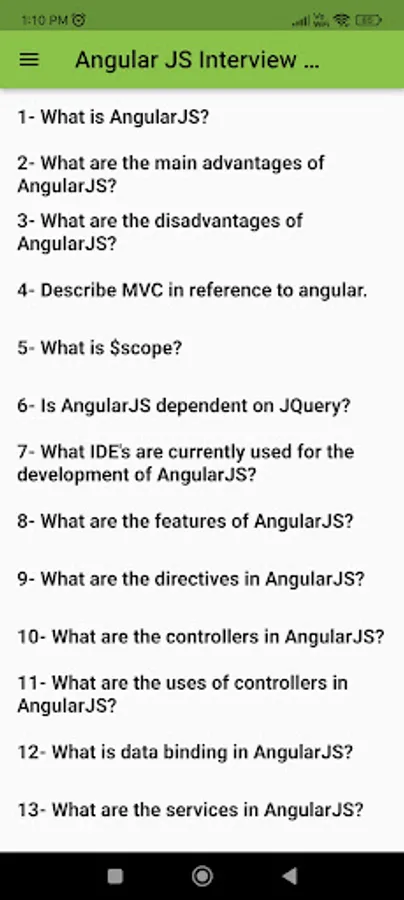 Angular JS Interview Questions: For those specifically interested in Angular JS, our app includes a dedicated section with over 100+ questions focused on Angular JS concepts. Deepen your knowledge and boost your confidence in Angular JS interview scenarios.