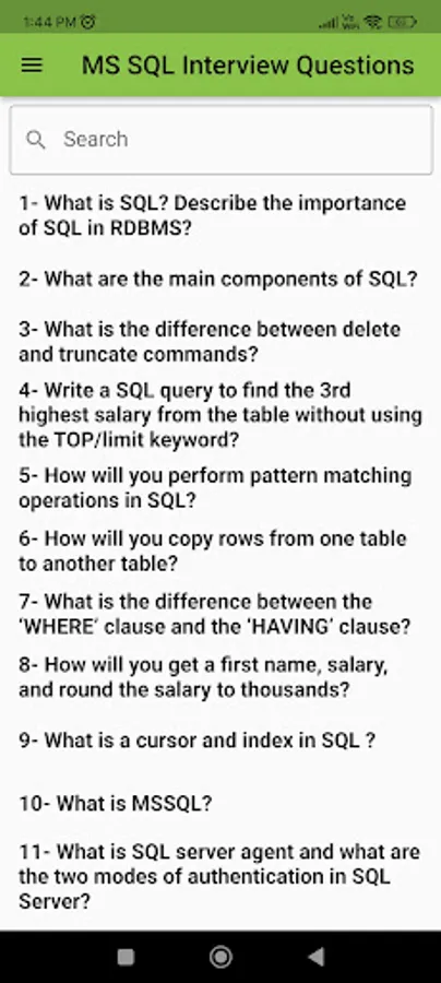 Preparing for a technical interview? Look no further! MS SQL is here to help you excel in your technical interviews. Whether you're a fresher just starting your career or an experienced professional looking to level up, our app provides a comprehensive collection of interview questions and answers to enhance your preparation and boost your chances of success.
