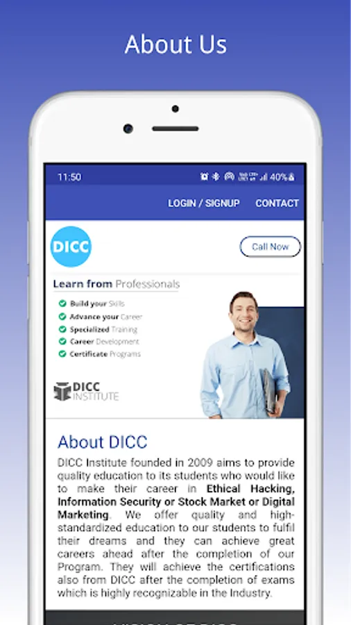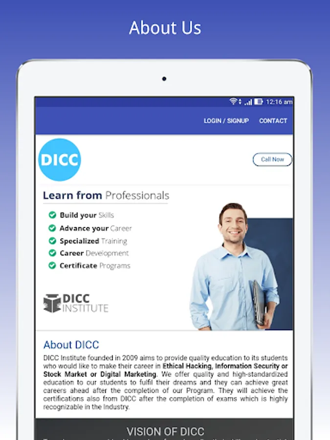 DICC Institute founded in 2009 aims to provide quality education to its students who would like to make their career in Ethical Hacking, Information Security or Stock Market or Digital Marketing. We offer quality and high-standardized education to our students to fulfil their dreams and they can achieve great careers ahead after the completion of our Program. They will achieve the certifications also from DICC after the completion of exams which is highly recognizable in the Industry.