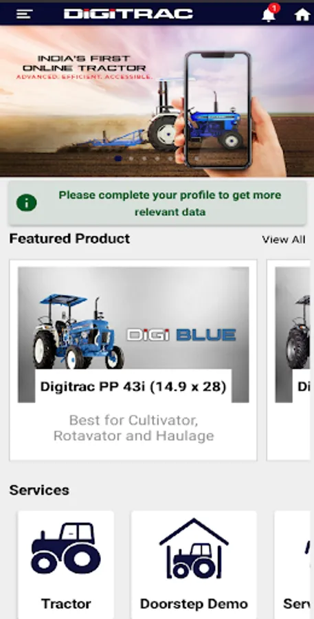 Digitrac is a tractor manufacturer which offers all of its fully-featured tractors, implements, accessories and agri services exclusively online! This helps make your next tractor more affordable, makes booking, demo and delivery more convenient and keeps your entire interaction with Digitrac from the pre-sales stage to your post-sales experience completely transparent. This is how Digitrac lives by its motto of being Advanced. Convenient. Transparent.