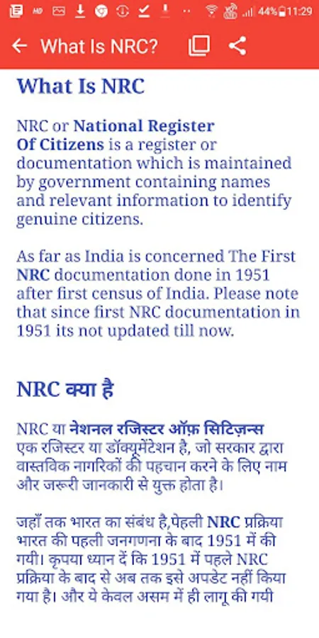 This App is to provide you to the point information about NRC(National Register Of Citizens), CAA (Citizenship Amendment Act), NPR(National Population Register)etc other Important Acts and database Implemented by Government of India.