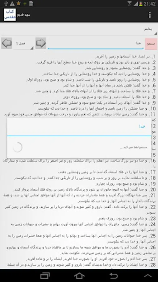 کتاب مقدس یکپارچه با پایگاه داده SQLite.