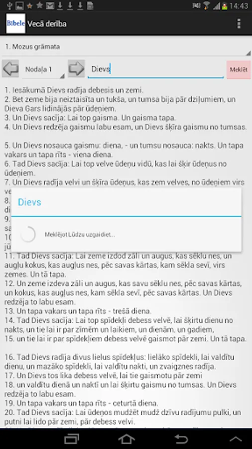 Bībele ar integrētu datu bāzes SQLite.