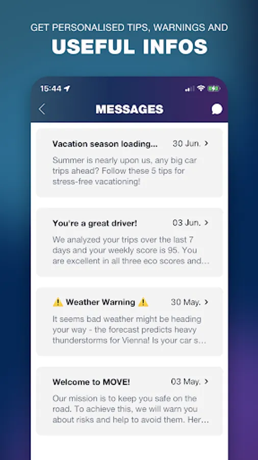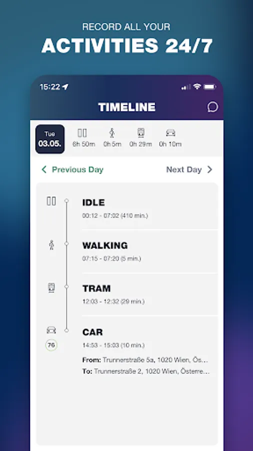 Dolphin MOVE shows you the possibilities and power of a telematics application. It detects, analyzes and displays your mobility in a safe and efficient way. Everything you need is already inside your smartphone, and no additional hardware is required. The timeline in the app gives you feedback on your driving behavior, informs you of any risks and sends you interesting messages to optimize your choice of transportation.