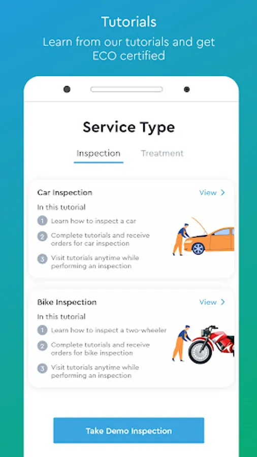 With the ECO app, you can get trained to become an ECO Certified Technician, also known as an ECO Ninja, and perform auto inspections. If you wish to order an auto inspection, please visit www.ecoinspection.in