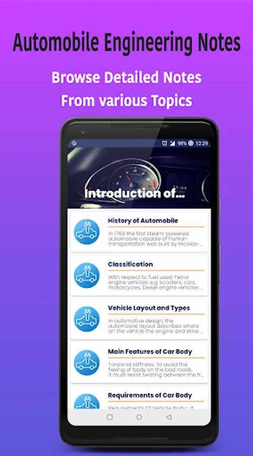 This App of automobile engineering brings the functional and constructional working of automobiles. This app contains all the basic to advanced concepts on automobile & automotive engineering.