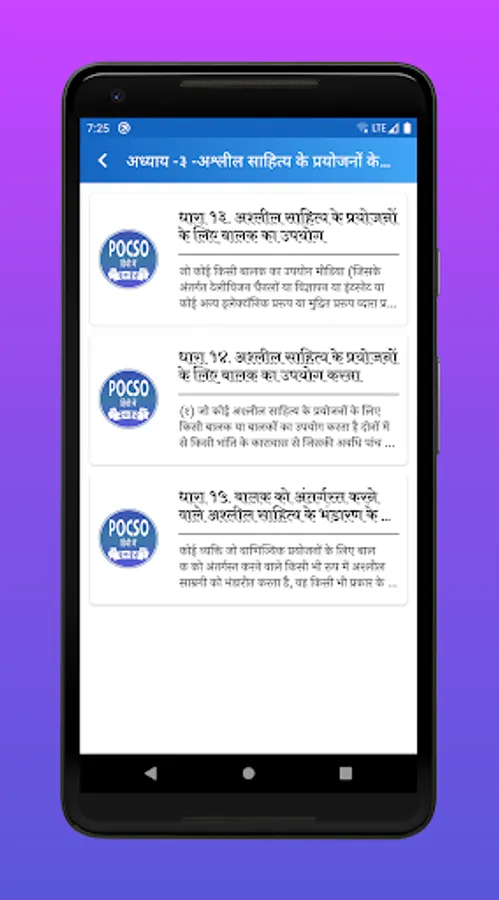 Protection of Children from Sexual Offences Act, 2012 (लैंगिक अपराधों से बालकों का संरक्षण अधिनियम, 2012), is now available in Hindi language on your Android devices. The POCSO Act, 2012 app is divided properly in chapters, and sections with details in Hindi language.
