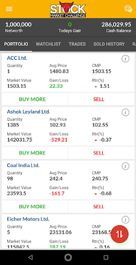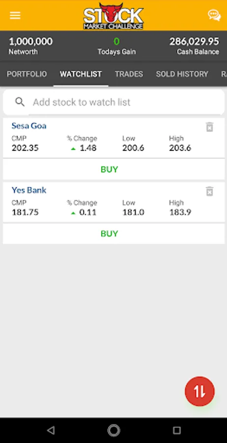Stock Market Challenge is an online simulation trading tool where you create and manage your own portfolio and compete with other players in a risk-free environment. Whether you're new to the stock markets or an experienced investor, this is a powerful tool for building skill, evaluating and tuning your strategy, and gaining important investing experience. Stock Market Challenge is free and easy to use. Simply buy stocks to build your initial portfolio. Continue to track the market and keep an shuffle your portfolio to grab opportunities provided so as to maximize your gains.