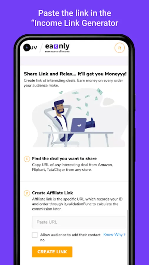 Earnly-we are the new make monet from home with zero investments, just by sharing deals across your social media platforms like Instagram, Whatsapp, Telegram, Takatak, Chingari, MX Player and more.