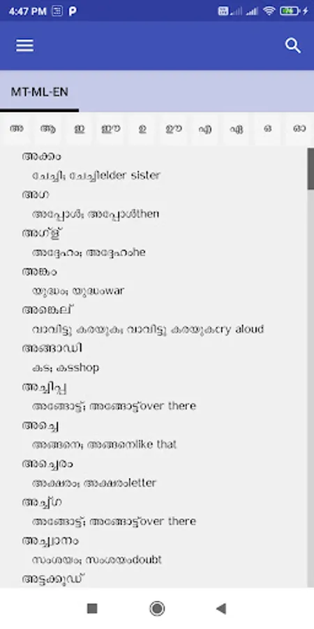 അ ആ ഇ ഈ ഉ ഊ എ ഏ ഒ ഓ