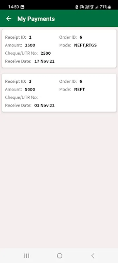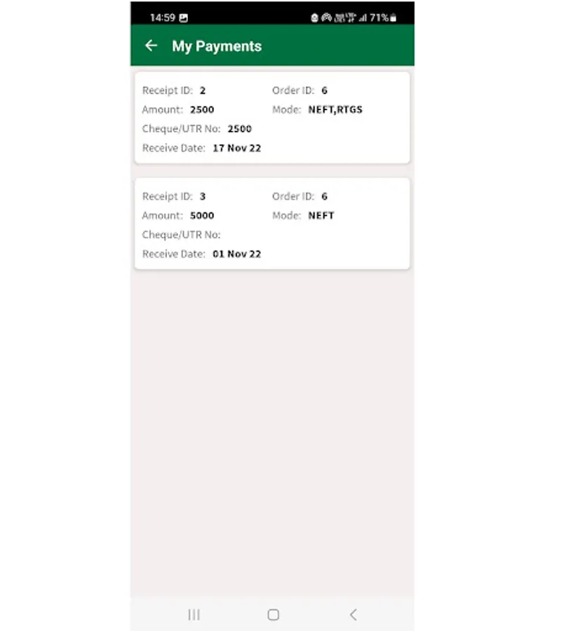 4. Account ledger of payments
