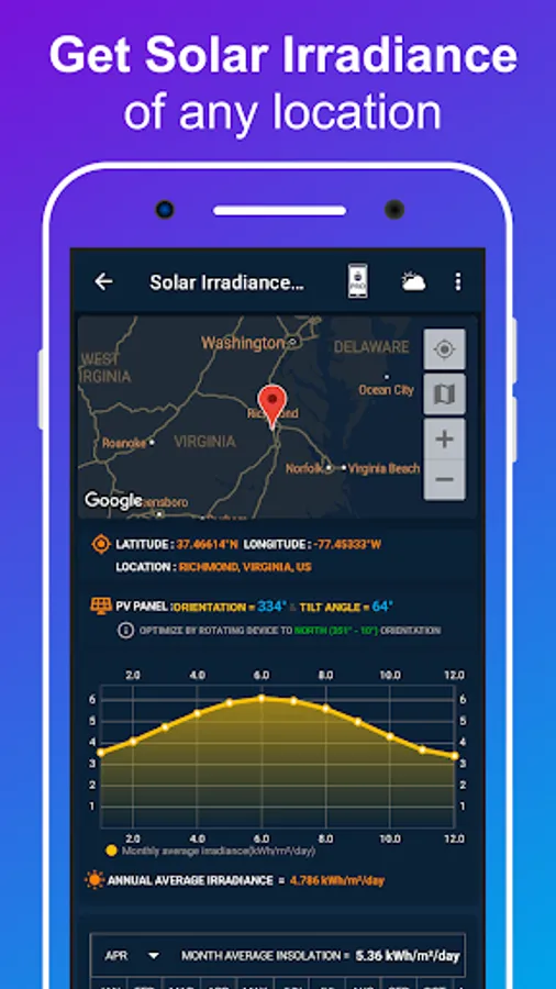• Solar rooftop calculations,