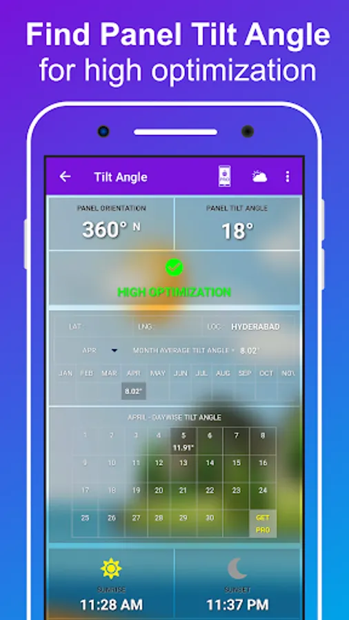 • Tilt angle with monthly data.