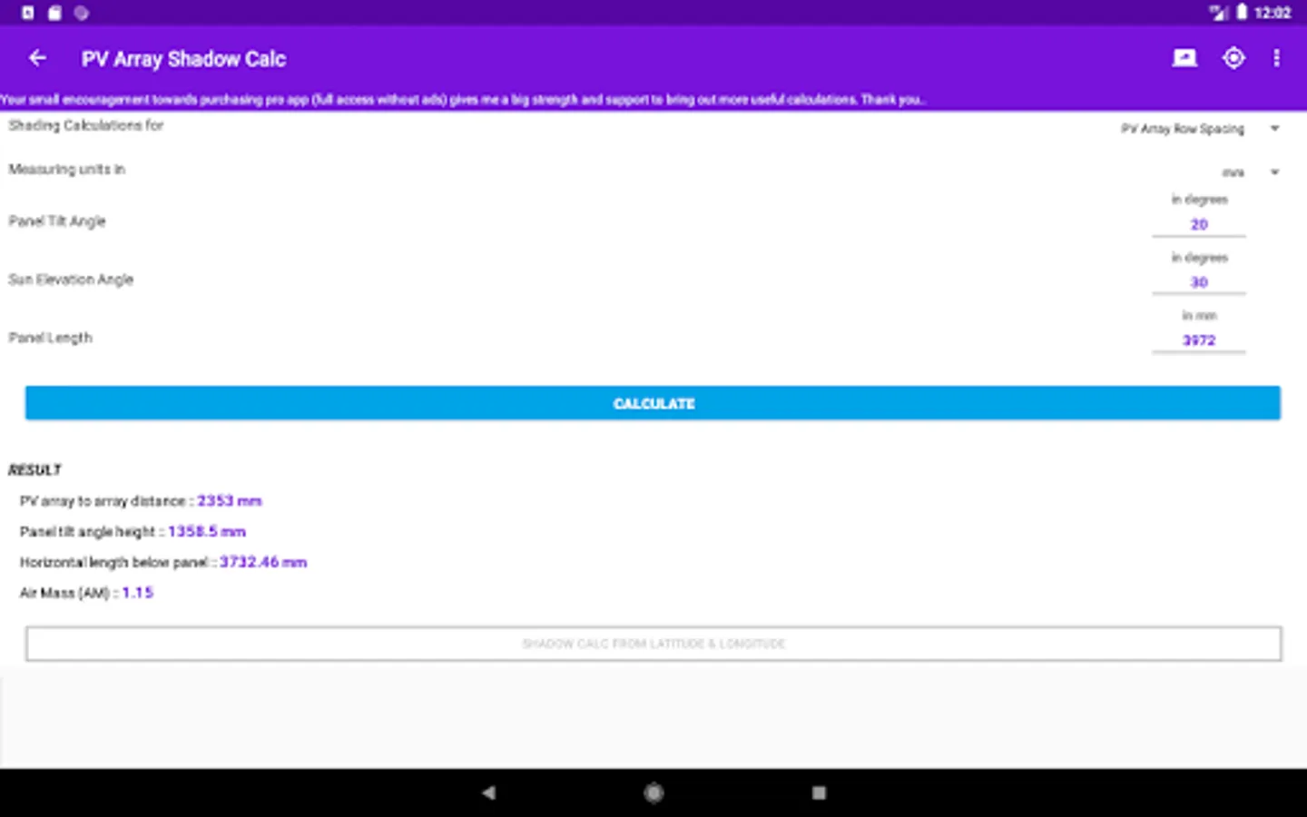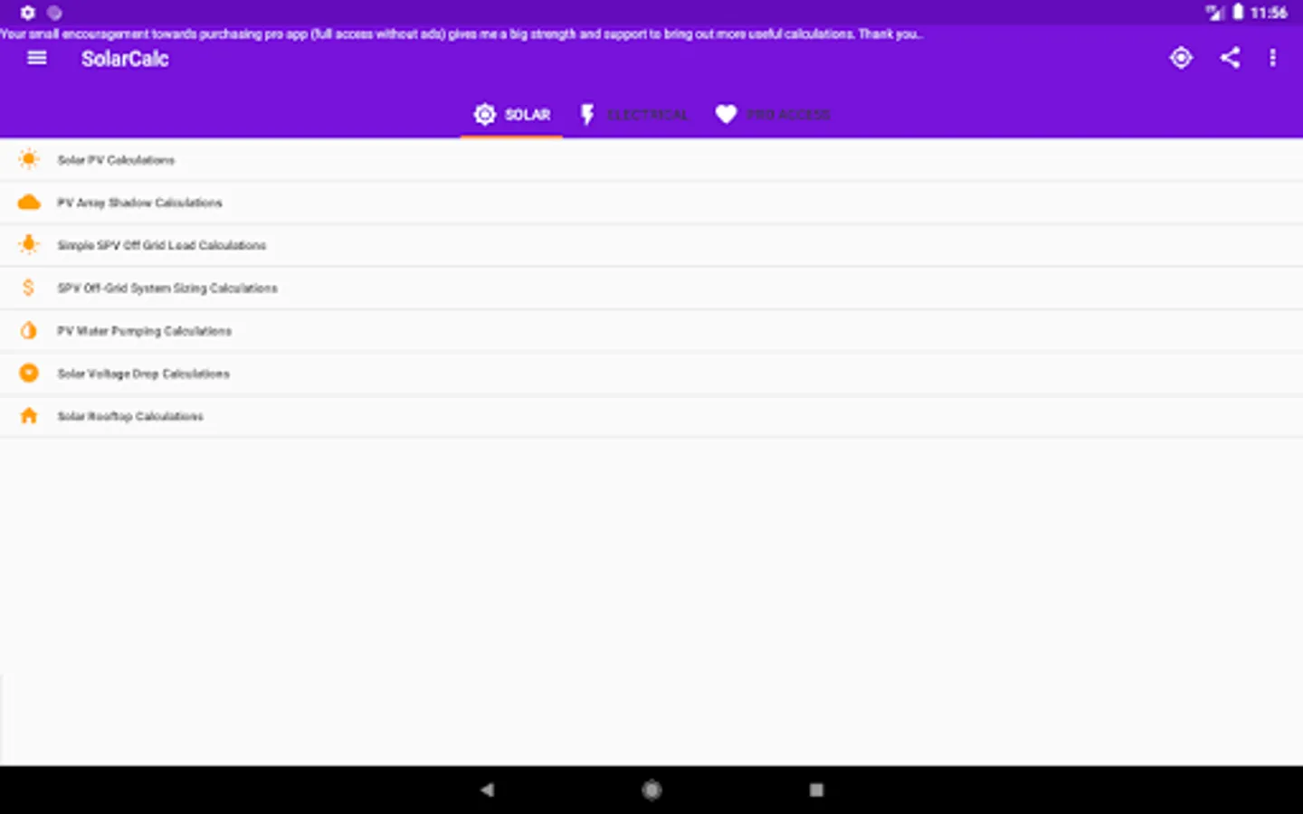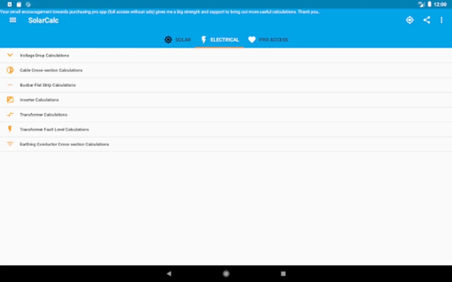 For more calculations and features to add or facing bug issues in the app you may reach at SolarElectroCalc@gmail.com