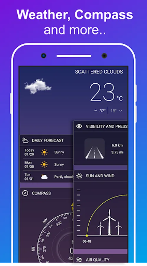 • Sun, Moon and Wind data,