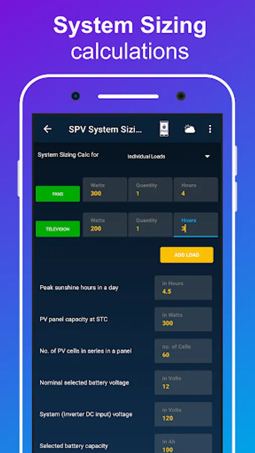 • Simple SPV off-grid load calculations,