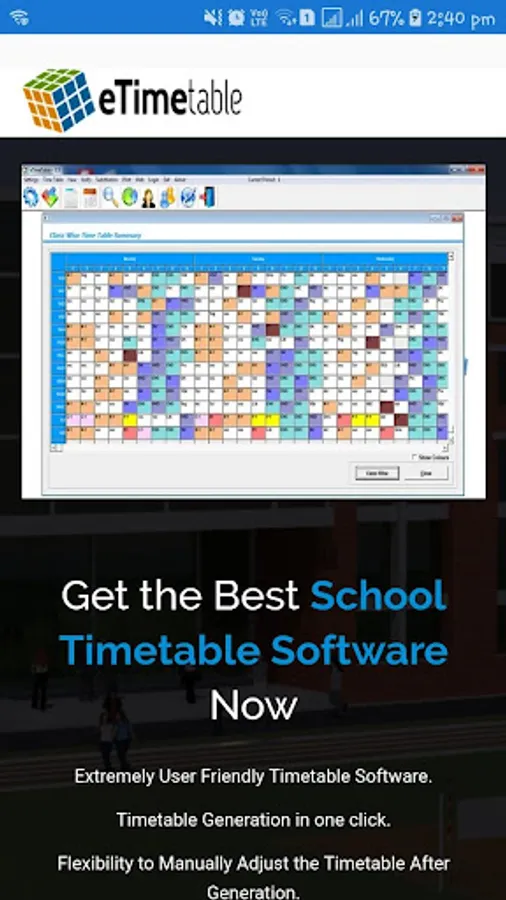 eTimetable is a comprehensive time table management solution for schools & colleges, which helps in overcoming the challenges. School timetable software provides extremely simple interface to enter all subjects, classrooms, teachers and their workloads.