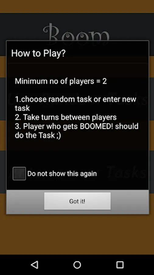 4. The player who gets BOOM! should do the Funny Task afore mentioned and Enter a new Task to do.